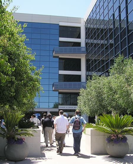 Третий день составили три ключевых доклада ответственных сотрудников Intel по трем основным технологическим и продуктовым направлениям деятельности корпорации — платформам для цифрового дома и настольным системам (процессорам и пр.), направлению развития цифрового офиса, платформам для него и вообще направлению Digital Enterprise (серьезных серверных систем и процессоров/чипсетов для них), и, наконец, по мобильным системам, где, в частности, были впервые обнародованы некоторые новые детали о грядущем двуядерном мобильном процессоре с кодовым именем Yonah. Проходили эти презентации в самом сердце штаб-квартиры Intel в Санта-Кларе — в заботливо обсаженном березками здании имени одного из основателей Intel Роберта Нойса (Robert N. Noyce),
