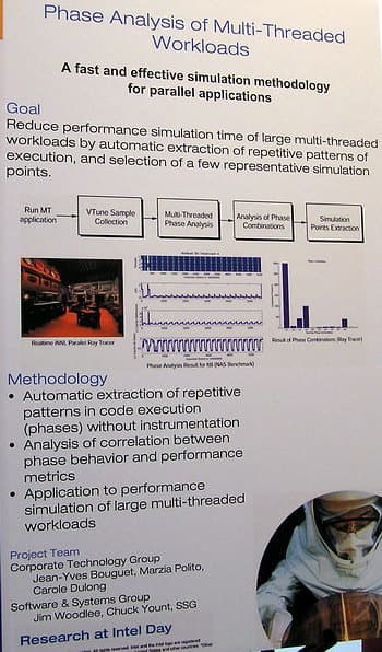 Впрочем, рассказ о выставке можно было бы еще долго продолжать. И я специально не детализирую каждую из представленных тем, поскольку чтобы раскрыть их подробнее, фактически, требуется написать по отдельной статье. Если кому-то захочется посмотреть на какой-то из данных постеров поподробнее и в большем разрешении, напишите мне. В принципе, доступны и более развернутые материалы по каждому из стендов (тем), которые, я надеюсь, в ближайшее время появятся на сайте Intel — ведь создали же подробную страничку со всеми материалами по следам прошлогоднего Research at Intel Day 2004 (см. линк в начале статьи).