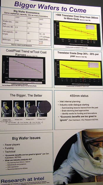 Исследование перспектив развития и применения будущих платформ ведется не только на «прикладном» уровне, но и с прицелом на дальнюю перспективу. Например, к началу-середине следующего десятилетия (2012-2014 годы) Intel планирует перейти на производство пластин диаметром 450 мм взамен нынешних 300-миллиметровых, которые она освоила всего пару лет назад.