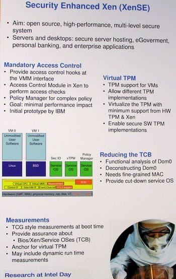Новая технология Xen Virtual Machine Monitor (совместная разработка и Intel и Кембриджского университета в Англии) позволяет создавать несколько виртуальных партиций на одном аппаратном ресурсе с целью одновременного запуска различных изолированных друг от друга операционных систем и приложений.