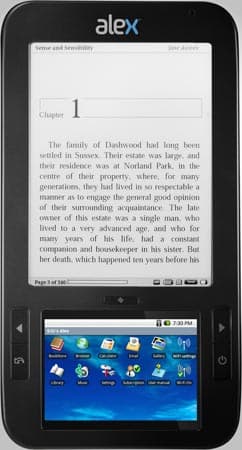 Компания Spring Design устроила премьеру электронной книги Alex с двумя экранами: цветным ЖК-дисплеем размером 3,5 дюйма и монохромным «бумажным». Устройство поддерживает беспроводные технологии Wi-Fi, 3G, EVDO/CDMA и GSM.