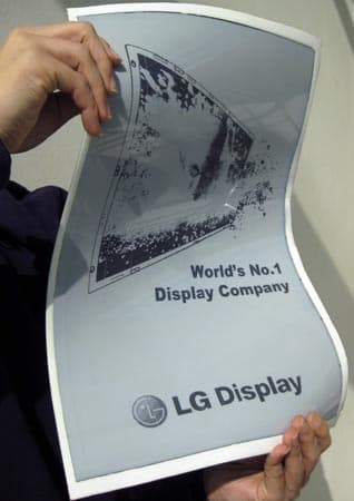 Очевидно, что LG понравилось придумывать большие экраны. В конце января был представлен 19-дюймовый гибкий дисплей, эдакая электронная газета. Размеры дисплея равны 250 x 400 мм, толщина листа составляет 0,3 мм, а вес его — 130 граммов.