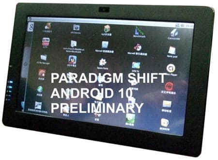 Компания Paradigm Shift представила 10-дюймовый планшетный компьютер, работающий под управлением ОС Android. В основе ПК — процессор Marvel PX166 с частотой 800 МГц.