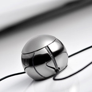 Металлический шарик вместо мыши — именно так выглядит разработка OreObject. Для общения с компьютером предназначены пара сенсорных клавиш и поверхность манипулятора, служащая для прокрутки. Увесистый (235 граммов) шарик ручной работы имеет диаметр 65 мм и высоту 54 мм.