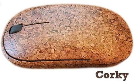 Продолжая тему нестандартных мышей, расскажем о концепте Corky: беспроводной мышке, изготавливаемой из пробки и переработанного пластика. Манипулятор не нуждается в источнике питания: он вырабатывает ее сам, извлекая пользу из собственного движения, нажатия на кнопки или прокрутки колеса.