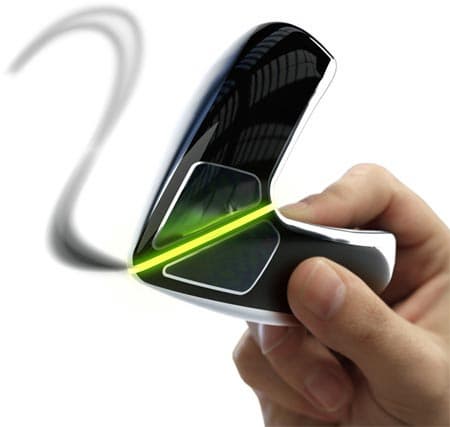Еще один концепт-грызун: eVouse в форме буквы V можно использовать, как мышь или как своеобразное перо. Речь идет о способности мыши отслеживать перемещения в пространстве. eVouse будет содержать сенсорные кнопки и колесико прокрутки, а для удобства общения с пользователем будет использовать зеленый светодиод и подмигивать им.