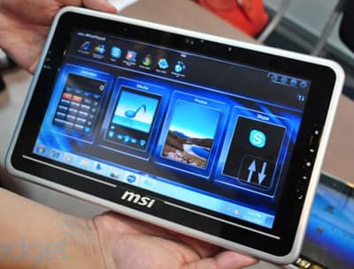 Компания MSI последовала примеру ASUS и представила свои два планшета. Оба устройства оснащены 10-дюймовыми сенсорными экранами, но на этом их сходство заканчивается. Одна модель на базе Intel Atom имеет 2 ГБ оперативной памяти, SSD объемом 32 ГБ и работает под управлением Windows 7. Вторая модель на платформе NVIDIA Tegra 2 работает под управлением Android 2.1.