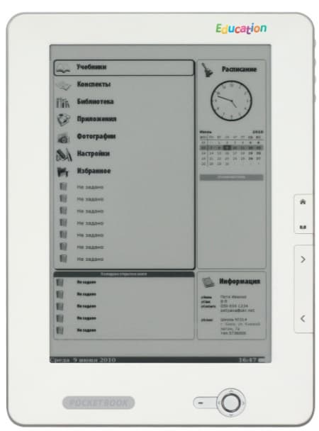 Компания PocketBook объявила о выпуске книги Education. В базовую комплектацию входит 6 словарей: английский, немецкий, французский, испанский, русский, португальский. Режим чтения включает расширенный набор функций, полезных для студентов. Диагональ экрана Pocketbook Education равна 9,7 дюйма, что соответствует габаритам обычного учебника.
