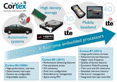 Активное развитие рынка мобильных устройств расшевелило компанию ARM: с самого начала месяца было объявлено о выпуске двух 28-нанометровых процессоров Cortex-R5 MPCore и Cortex R7-MPCore. Обе модели доступны в одноядерных и двухъядерных вариантах.