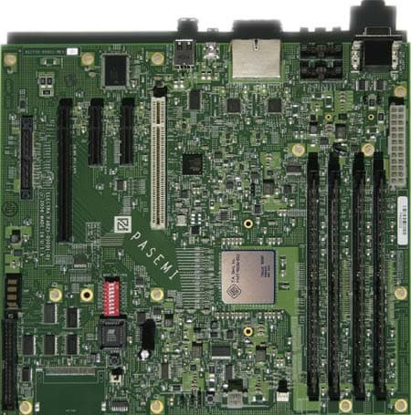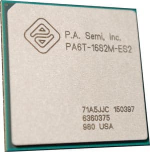 Еще одна любопытная разработка на архитектуре Power Architecture была создана, но уже не IBM, а компанией P.A. Semi, сообщившей о начале поставок первого высокопроизводительного процессора семейства PWRficient. На разработку новинки ушло три года. Двухъядерное изделие, получившее обозначение PA6T-1682M, построено на архитектуре Power Architecture. Как утверждает разработчик, процессоры PWRficient обеспечивают «непревзойденный показатель производительности в расчете на единицу», потребляя 5-13 Вт при тактовой частоте 2 Гц. Таким образом, если поверить P.A. Semi, процессор на 300-400% превосходит по эффективности продукцию конкурентов.
