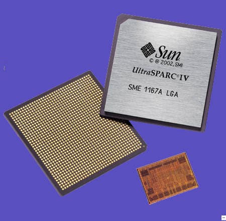 Напомним вкратце, что 64-разрядные UltraSPARC IV+ представляют собой пятое поколение процессоров семейства UltraSPARC и содержат два процессора UltraSPARC III, размещенных на одном кристалле. UltraSPARC IV+ имеют 2 МБ кэш-памяти второго уровня (L2) и 32 МБ внешнего L3-кэша. Производятся процессоры по 90-нм технологическому процессу, как и UltraSPARC T1.