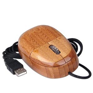 Если накопить денег на настоящую деревянную клавиатуру не получается, можно приобрести ее пластиковую подделку, выкрашенную «под дерево». Имеется и мышь такой расцветки. Оба предмета из комплекта подключаются к ПК по интерфейсу USB. Клавиатура 104-клавишная, мышь — — оптическая, трёхкнопочная, с колесиком прокрутки, подсвеченным голубым светодиодом. Комплект обойдется в 20 долларов.