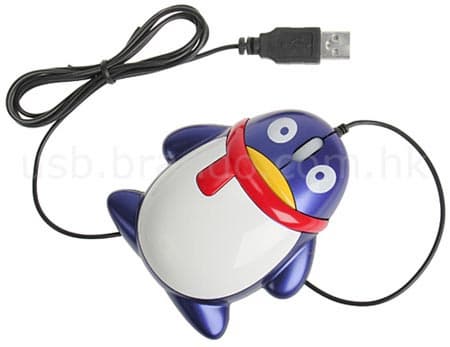В ассортименте Brando, появился компьютерный манипулятор типа «пингвин». Да, это не мышь, это настоящий пингвин, лежащий на спинке. Живое воплощение старого логотипа популярного в Китае сервиса мгновенного обмена сообщениями QQ — этот пингвин порадует не только китайцев, но и всех, кто когда-либо имел дело с ОС Linux.