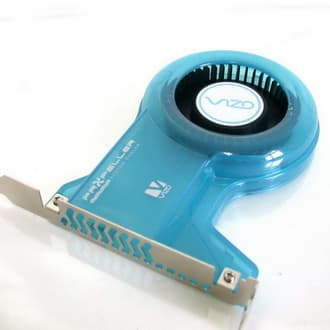 Компания VIZO представила Propeller (модель PCL-101). Этот кулер устанавливается в один из разъёмов расширения и вытягивает теплый воздух за пределы корпуса. Шум новинки составляет менее 20 дБа. Производительность — 5,34 CFM при скорости вращения вентилятора в 1500 оборотов в минуту. Габариты — 131,7×87,4×22,5 мм, вес — 120 граммов.