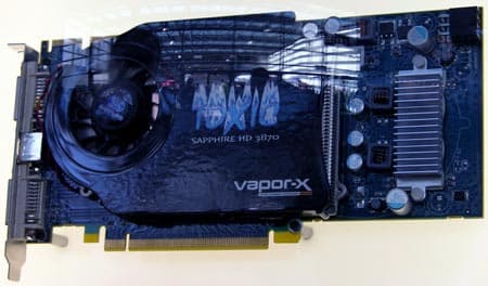 Компания Sapphire на CeBIT показала видеокарту HD 3870 TOXIC с оригинальной системой охлаждения Vapor-X. Частота памяти, указанная в спецификациях изделия, еще выше, чем ожидалось: она составляет 1172 МГц. Впрочем, память серийных изделий, скорее всего, будет работать на частоте 1152 МГц — именно такое значение было установлено на протестированной нами плате.