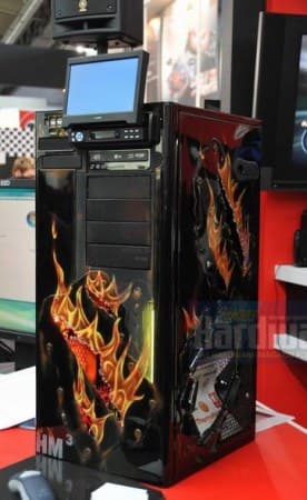 Среди прочих экспонатов стенда компании Thermaltake на выставке CeBIT 2008 особо выделялся системный блок HM3. Пробоины в корпусе и «огненная» раскраска — лишь внешняя оболочка ПК, в котором есть все, что нужно геймеру и даже больше. Блок включает два четырехъядерных процессора Intel Core 2 Extreme QX9775, разогнанных до 4 ГГц (для этого пришлось поднять напряжение питания CPU до 1,6 В), два графических адаптера NVIDIA GeForce 9800 GX2 (всего четыре GPU), а также гибридный привод с поддержкой дисков Blu-ray и HD DVD. Цена эксклюзивного ПК — 30 тысяч евро.