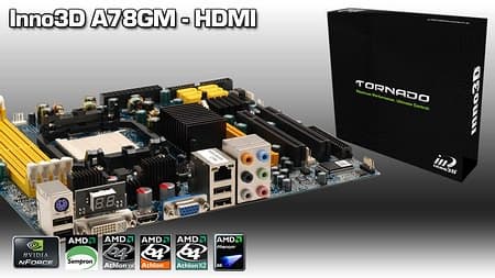 Inno3D выпустила системную плату A78GM-HDMI. Это компактная материнская плата типоразмера mATX, которая рассчитана на работу с процессорами AMD Socket AMD2+, построена на чипсете AMD RS780G и оборудована встроенной DX10-графикой. Кроме того, подсистема видео «может похвастать» поддержкой технологий ATI Avivo HD, ATI Hybrid Graphics, наличием разъемов HDMI и DVI (с HDCP).