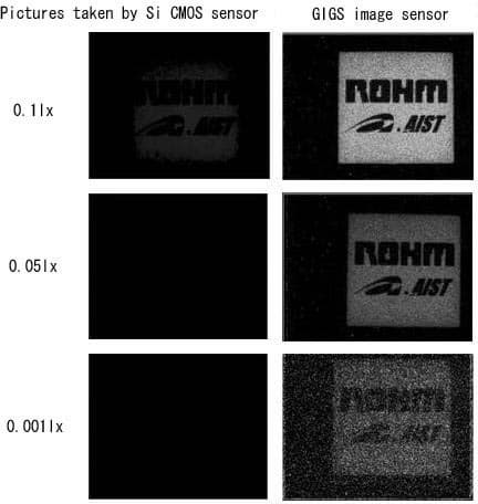 Японские специалисты из компании Rohm и исследовательского центра института National Institute of Advanced Industrial Science and Technology (AIST) показали прототип датчика изображения типа CIGS (Cu-In-Ga-Se), который примерно в 100 раз чувствительнее, чем датчики типа CCD, CMOS и другие кремниевые датчики. В датчике изображений применена та же технология, что и в солнечных батареях CIGS.