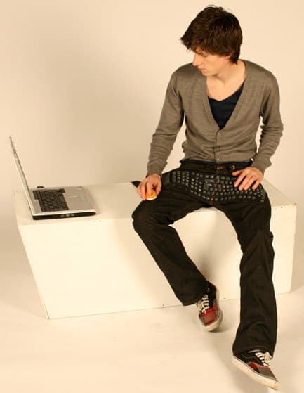 Дизайнер Эрик де Нийс (Erik De Nijs), решил встроить клавиатуру в джинсы. Продукт получил название «Beauty and the Geek jeans». Не забыто и второе популярное устройство ввода — мышь. Ее предлагается носить на ремешке в заднем кармане брюк. Кроме того, в этом наборе носимых на теле гаджетов есть и динамики — они вшиты в ткань.