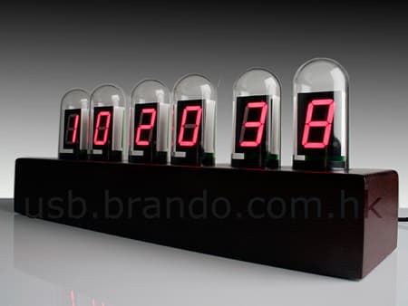 Часы USB Tube Clock выполнены на современной элементной базе, но внешним оформлением напоминают о временах калькуляторов «Искра». Размеры устройства составляют 10,5×28×7,5 см, вес — 550 г. Цена необычных часов равна $70.