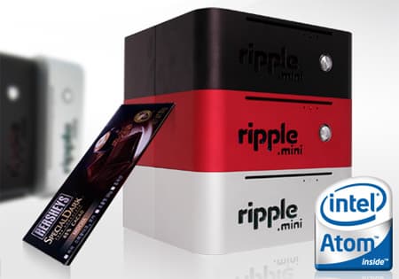 Компания ripple обновила настольный мини-ПК. Основой для новой модели ripple mini chocolate стала системная плата типоразмера Mini-ITX с процессором Intel Atom. Тактовая частота модели Intel Atom 230, использованной в ripple mini chocolate, равна 1,6 ГГц, частота FSB — 533 МГц. В системной плате используется набор системной логики i945GC + ICH7. Конфигурация системы включает оптический накопитель со щелевой загрузкой, четыре порта USB 2.0, до 2 ГБ памяти DDR2-533/667, звуковую подсистему HD Audio, сетевой адаптер Ethernet 10/100 Мбит/с. Размеры изделия составляют 15×210×80 мм. Цена ripple mini chocolate на южнокорейском рынке составляет примерно $210.