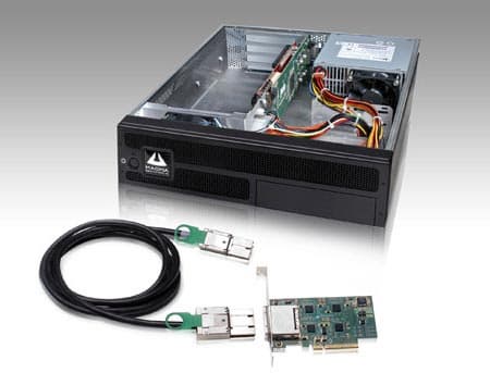 Amplicon выпустила внешний блок Magma ExpressBox (EB4) для подключения плат расширения. С помощью этого продукта можно подключить до четырех карт PCI Express (PCIe) к ноутбуку, серверу, настольному ПК, оснащенному одним разъемом PCIe или ExpressCard. В усиленном корпусе Magma EB4 расположено четыре слота, рассчитанных на установку плат PCIe x1, x4, x8 и x16. В комплект EB4 входит плата хоста с с интерфейсом PCIe x8 половинной высоты или карта ExpressCard34, кабель и шасси с четырьмя посадочными местами для полноразмерных плат расширения и блоком питания. Мощность блока питания равна 420 Вт. В корпусе Magma EB4 предусмотрено место для установки четырех 3,5-дюймовых винчестеров. Слоты PCIe поддерживают функцию горячей замены плат расширения.