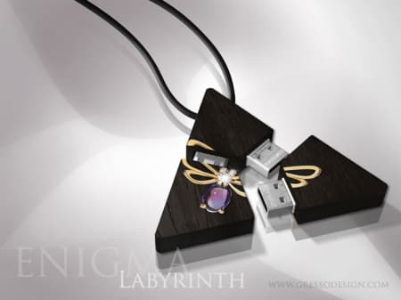 Компания Gresso, специализирующаяся на производстве мобильных телефонов класса люкс, выпустила коллекцию USB-накопителей ENIGMA. Новинка в первую очередь является ювелирным украшением, которое подчеркнёт статус владельца «флэшки» стоимостью 5000 евро. Изделие выполнено из 200-летнего африканского черного дерева и инкрустировано бриллиантами и золотом. Коллекция включает две линии — Constellation и Labyrinth. Объем накопителей составит 192 ГБ.