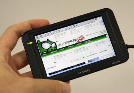 Новинка Century Japan LCD-4300U — это миниатюрный монитор с USB-подключением, который может играть роль дополнительного дисплея настольного или мобильного ПК. Дисплей со светодиодной подсветкой питается от шины USB, так что единственным проводом, сопровождающим его появление в конфигурации системы, является USB-кабель. Разрешение 4,3″ экрана равно 800×480 пикселей WVGA, яркость составляет 200 кд/кв.м.