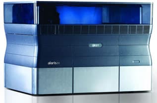 Компания Objet Geometries представила Alaris 30 — первую в своем роде настольную модель трехмерного принтера, которая позволит дизайнерам и производителям создавать прочные, высококачественные модели при минимальных затратах и с высокой точностью. Разрешение «печати» составляет 600×600 dpi. Каждый слой фотополимера отверждается после нанесения с помощью ультрафиолетового излучения, так что сформированный объект готов к дальнейшему использованию сразу по окончанию печати и не требует дальнейшей обработки. С помощью Alaris 30 можно изготавливать один объект размерами до 300×200×150 мм или одновременно несколько объектов меньшего размера. Объема четырех картриджей достаточно для 36 часов непрерывной работы.