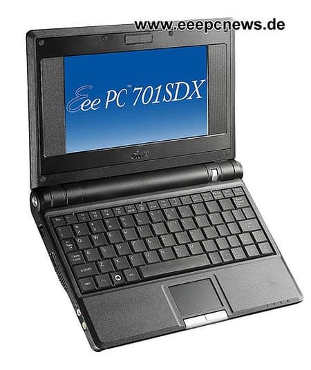 Линейка ASUS Eee PC, популярных нетбуков, будет, по данным немецкого источника, расширена за счет еще одной модели. Ею должна стать, как ожидается, доступная по цене 701SDX, которая будет стоить в районе 300 долларов. Новинка ожидается в трех цветовых исполнениях корпуса: черном, белом и розовом. Техническое оснащение будет небогатым — по предварительным данным объем накопителя будет равен 4 или 8 ГБ (SSD), диагональ экрана — как у модели 701 — 7″. Тип процессора (Intel Celeron или Atom) не указывается, исчезнет с «лица» нетбука и веб-камера, атрибут большинства остальных моделей Eee PC.