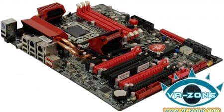 Foxconn готовит к выпуску флагманский продукт серии Quantum Force, известный под названием «Blood Rage». Им станет системная плата на наборе системной логики Intel X58 + ICH10R. Спецификации новинки впечатляют: чего стоит одна только поддержка многопроцессорных конфигураций Quad CrossFire и NVIDIA 3-Way SLI + PhysX, возможная благодаря наличию четырех слотов PCIe 2.0. Имеется три канала памяти DDR3 1066 или 1333 МГц, поддерживаются нештатные частоты 1600 и 1800 МГц, а максимальный объем составляет 24 ГБ (три гнезда DIMM).