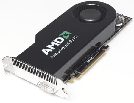AMD анонсировала ускоритель FireStream 9270 и новую версию набора для разработки программ ATI Stream Software Development Kit (SDK), получившую номер 1.3. Ускоритель AMD FireStream 9270 имеет производительность «суперкомпьютерного класса». Он может быть установлен в широкий круг серверов и рабочих станций. Потребляемая мощность платы равна 160 ВТ, а производительность — 1,2 teraFLOPS при вычислениях с плавающей запятой с одинарной точностью или более 240 gigaFLOPS при вычислениях с плавающей запятой с удвоенной точностью. На плате установлено два гигабайта памяти GDDR5.