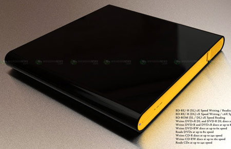 Появились изображения концепта, который представляет собой внешний накопитель, объединяющий в компактном корпусе винчестер объемом 500 ГБ и устройство для работы с оптическими носителями. Предполагается, что оптический привод будет поддерживать функцию записи на диски DVD и Blu-ray. Для подключения к ПК автор идеи предлагает использовать порт USB 2.0.