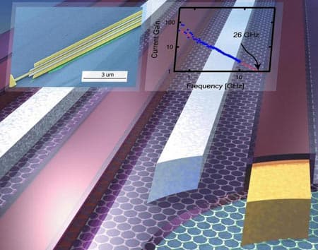 Специалисты IBM смогли создать графеновые транзисторы, работающие на частотах порядка гигагерц, и показать, что повышение частоты связано с уменьшением размеров. На данный момент рекордным является значение частоты 26 ГГц. При этом длина затвора транзистора равна 150 нм. Ученые ожидают, что улучшение диэлектрических свойств затвора и уменьшение его размеров до 50 нм позволит поднять частоту до значений порядка 1 ТГц. Запланировано также создание радиочастотных цепей на базе графеновых транзисторов.