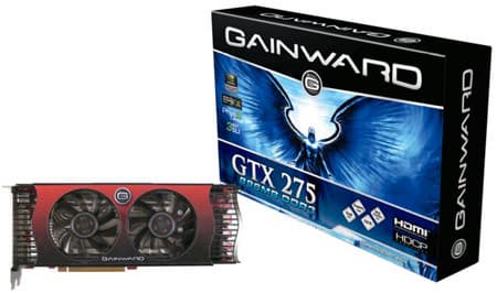Gainward сообщила о выпуске видеокарты GTX 275. Решение имеет 240 потоковых процессоров и 448-разрядную шину памяти, поддерживает технологии NVIDIA PhysX, CUDA, PureVideo, SLI и 3-way SLI, а также отраслевые стандарты DirectX 10 и OpenGL. Система охлаждения включает два вентилятора с низким уровнем шума, радиатор и тепловые трубки из меди. Карта оснащена 896 МБ памяти DDR3. Частоты ядра, шейдеров и памяти составляют 633, 1404 и 1134 МГц.