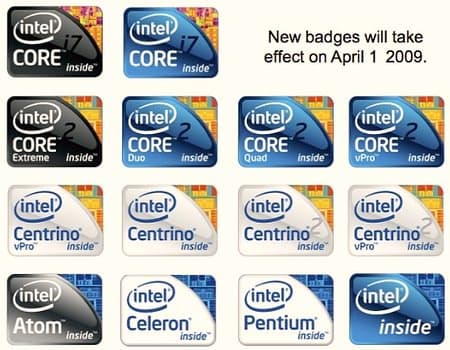 Intel решила пересмотреть обозначения своих процессоров и ввести новую систему рейтингов. В основе логотипа будет лежать слово (бренд), например, CORE, а уже обычным шрифтом будет указано семейство: Duo, Extreme, Quad, i7 а также vPro. Подобным же образом будут выглядеть и логотипы систем Intel Centrino и процессоров Atom, Celeron и Pentium.