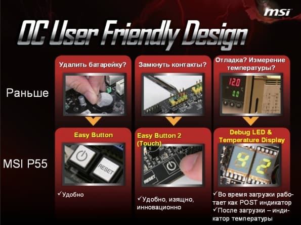 Помимо трех перечисленных «китов», на которых материнские платы P55 преодолевают «барьеры Xtreme Speed», MSI также внедрила в эту серию немало других технологий.