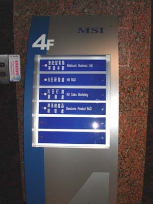В ходе выставки Computex 2005 нашему тестлабу довелось навестить фактически наших коллег из подразделения MSI, расположенного в окрестностях Тайпея. Как таковой фабрики по производству компонентов у MSI в Тайване уже нет — мощности переведены, как и у многих других вендоров в континентальный Китай, тогда как наукоёмкие задачи MSI оставили в Тайване. Это маркетинг, управление продажами и так называемый R&D («research and development» — дословно: научно-исследовательские и опытно-конструкторские работы).