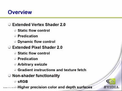 Затем Себастьян уделил некоторое количество времени рассказу о DirectX 9 и его новых возможностях в частности применения GeForce FX. Он рассказал о новых, специфичных капсах и о том, чего можно добиться, используя их.