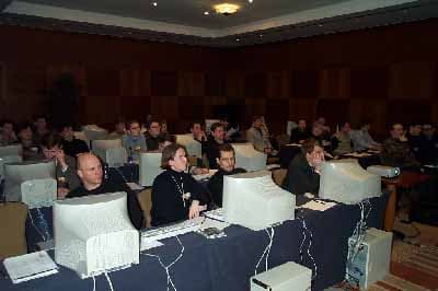 По плану проведения мероприятия, для каждого специалиста выделялся один персональный компьютер, но поскольку пришло довольно много людей, персональный компьютер делили на двоих, а то и троих человек. Как говорится, в тесноте, но не в обиде, поскольку из 20 компьютеров все 20 были оборудованы новинкой от NVIDIA картами GeForce FX 5800 Ultra. Кстати, компьютеры были любезно предоставлены компанией «ОЛДИ».