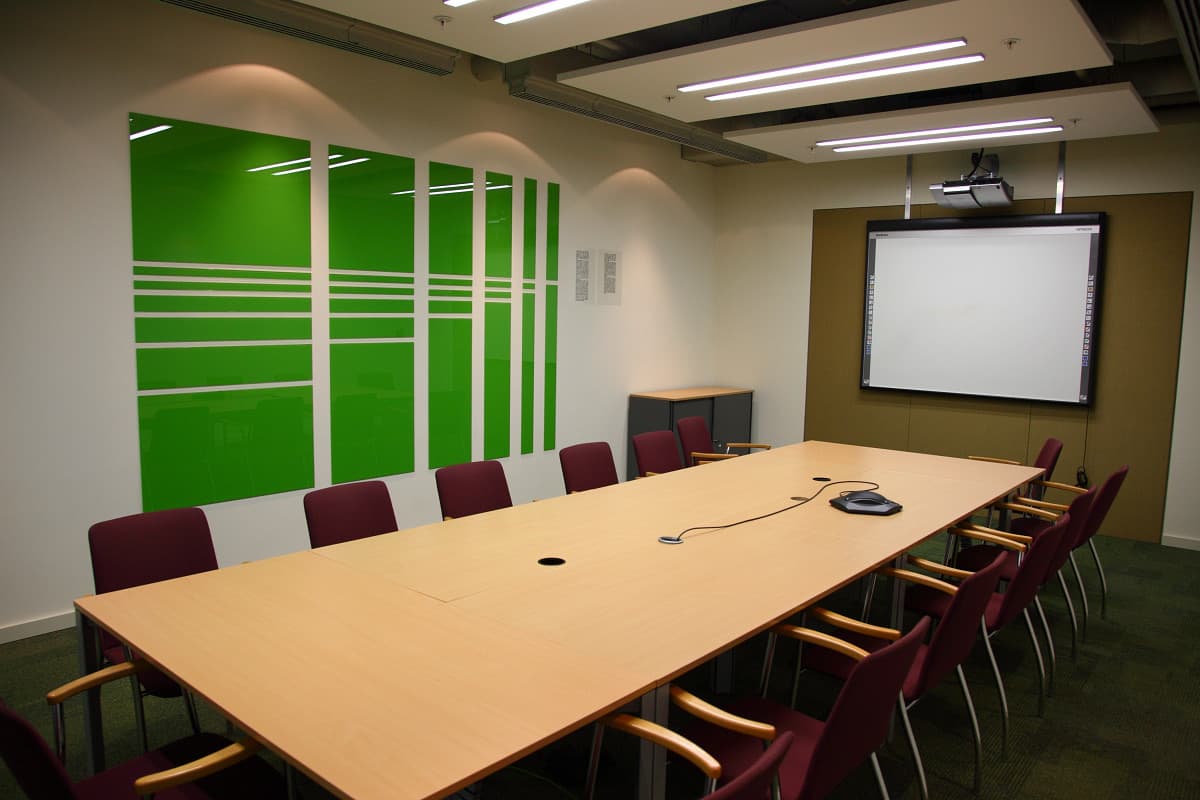 Для этой переговорной директор московского офиса Джон Спитцер придумал необычную настенную панель, рисунок которой иллюстрирует тему Золотого сечения. Идея пришла в голову Джона в 1989 году, после просмотра в музее Гуггенхайма в Нью-Йорке работ Марио Мерца, итальянского художника прошлого века.