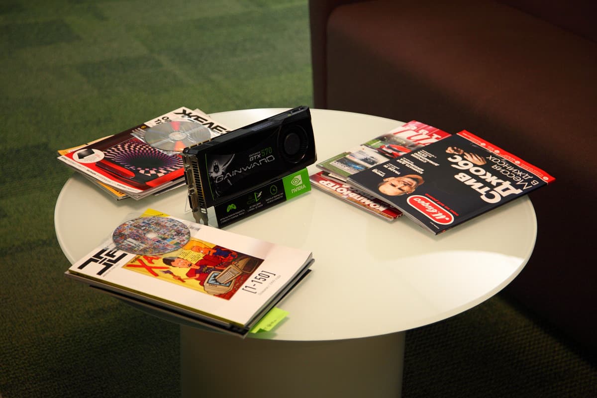 Надо отметить, что сотрудники московского офиса NVIDIA — это очень разные люди с широким кругом интересов. Так, в процессе прогулки по помещениям, я заметил на столе одного из инженеров собрание сочинений Максима Горького — удивительно, что графические архитектуры в NVIDIA ещё не называют именами литературных героев.