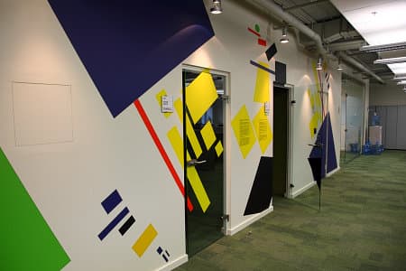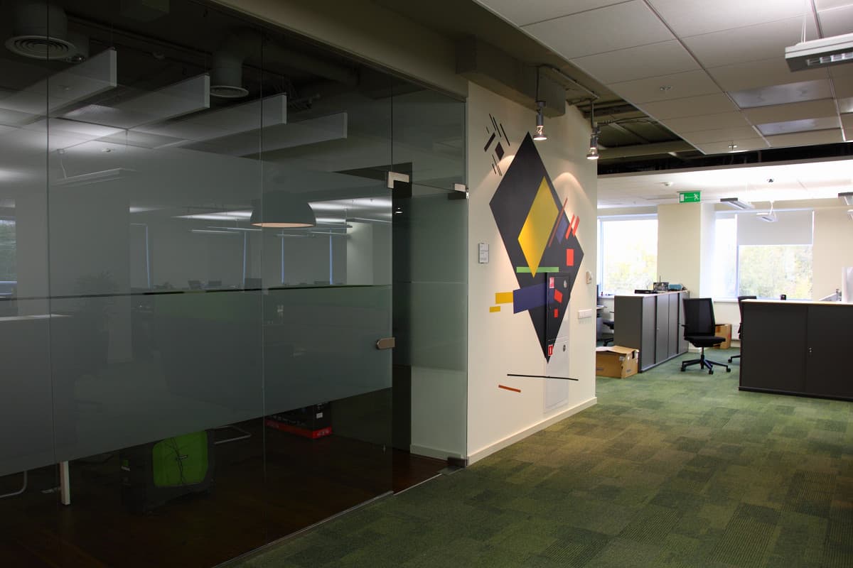 Стены на третьем этаже офиса оформлены коллажами на тему произведений Казимира Малевича. Для декорирования офиса были взяты произведения, относящиеся к супрематическому периоду творчества этого художника. В 1913 году Малевич, работая над декорациями и костюмами к футуристической опере «Победа над солнцем», изобретает новое направление в живописи и называет его «супрематизмом».