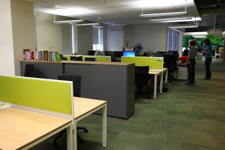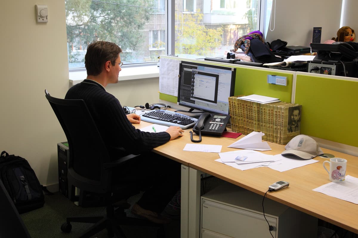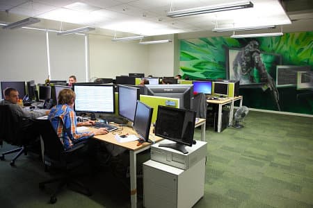 Все места тестеров и программистов оборудованы мониторами, причём иногда во множественном количестве (по три штуки на одном рабочем месте — запросто!), но большая часть системных блоков находится в серверном помещении, вход в которое разрешён далеко не всем.