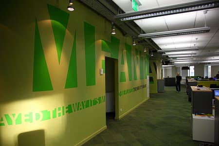 Внутренние стены второго этажа офиса NVIDIA в Москве оформлены в стиле известной программы поддержки игровых приложений The Way It's Meant To Be Played — соответствующие надписи разных размеров видны повсюду: