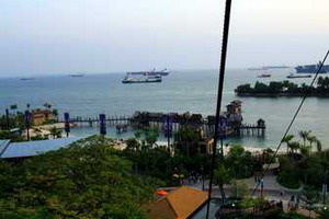 После такой вылазки в центр города мы вернулись в отель Swissotel The Stamford, нам дали отличный номер на 61-м этаже, мы немного привели себя в порядок (душ, туалет и прочее), и направились на Сентозу. Очень хотелось в первый же день попасть на море. Заодно и посмотреть новое шоу с фонтанами.