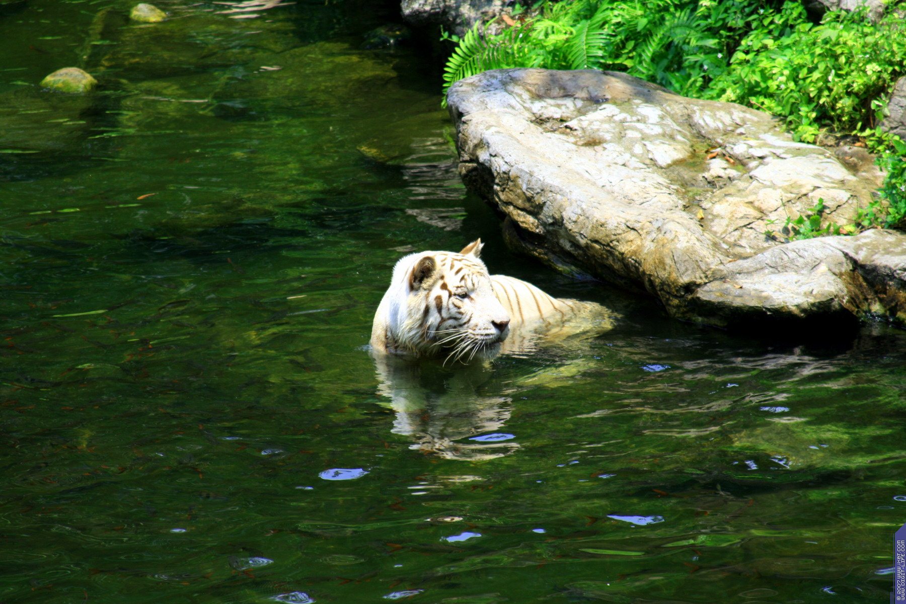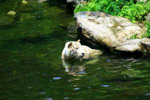 Белые тигры — гордость сингапурского зоопарка. Такой большой группы этих крайне редких зверей нет больше нигде. Да и тиграм созданы райские условия: и огромный загон, где можно порезвиться,