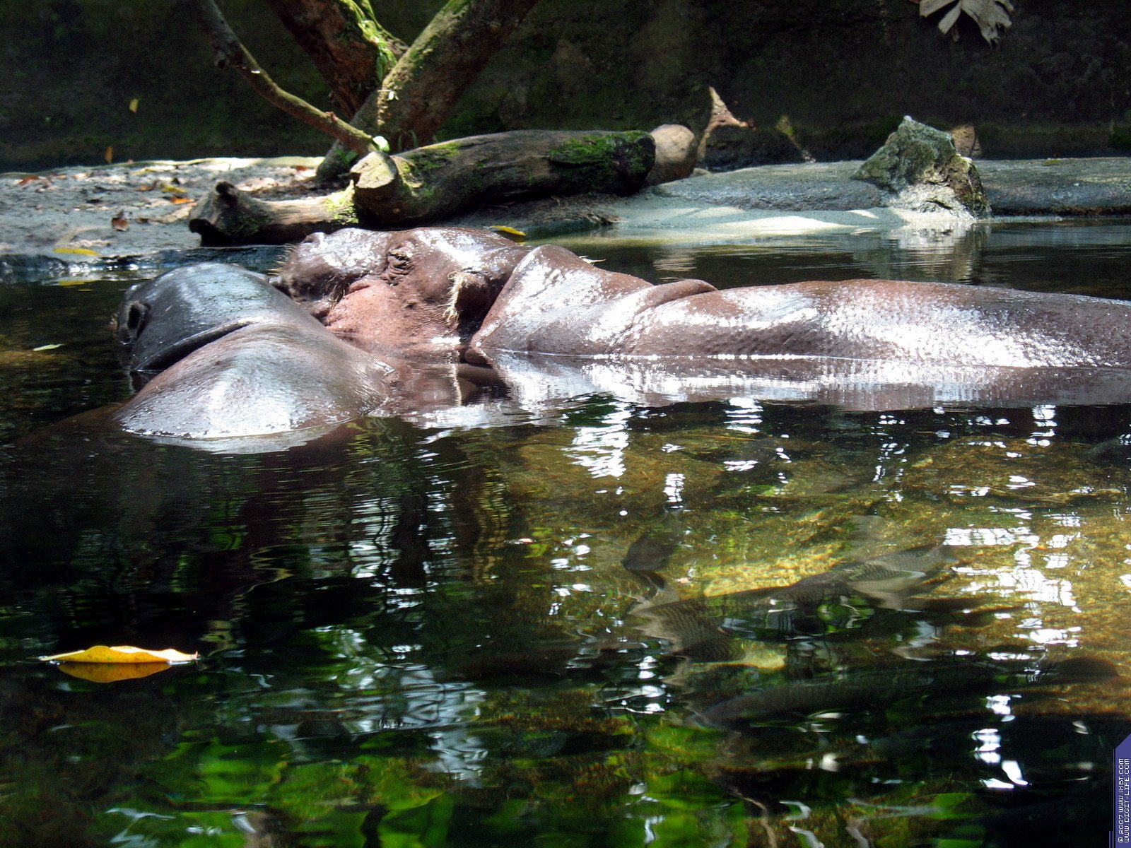 и большой водоем, где они с удовольствием ходят по дну, создавая себе свиту из плавающих там рыбок.