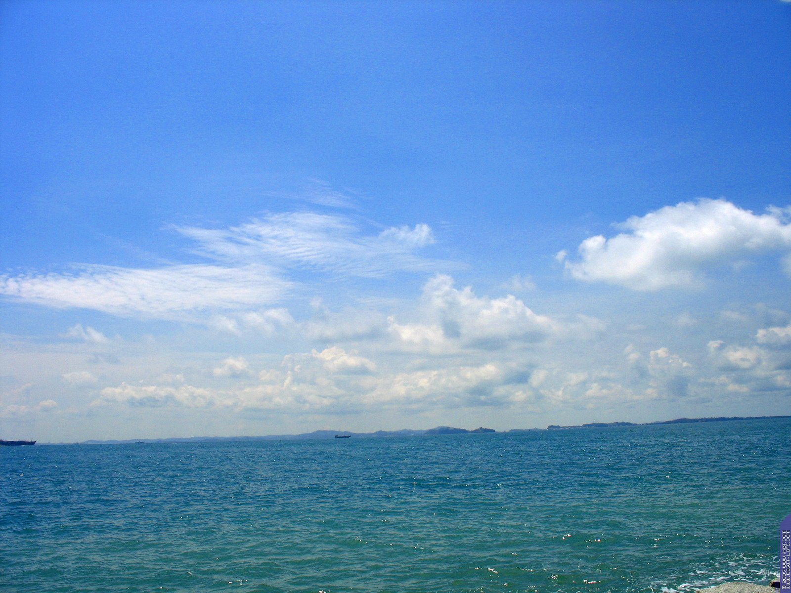 Вот это открытое море, южнее Кузу. На горизонте видна Индонезия, но не Бинтан (он гораздо восточнее). Для любителей поиска грязи, фекалий, мазута, нефти, айсбергов, и прочих
