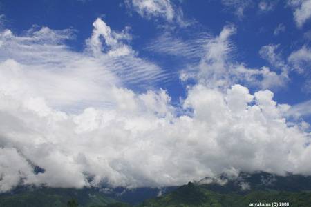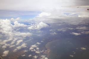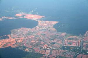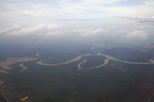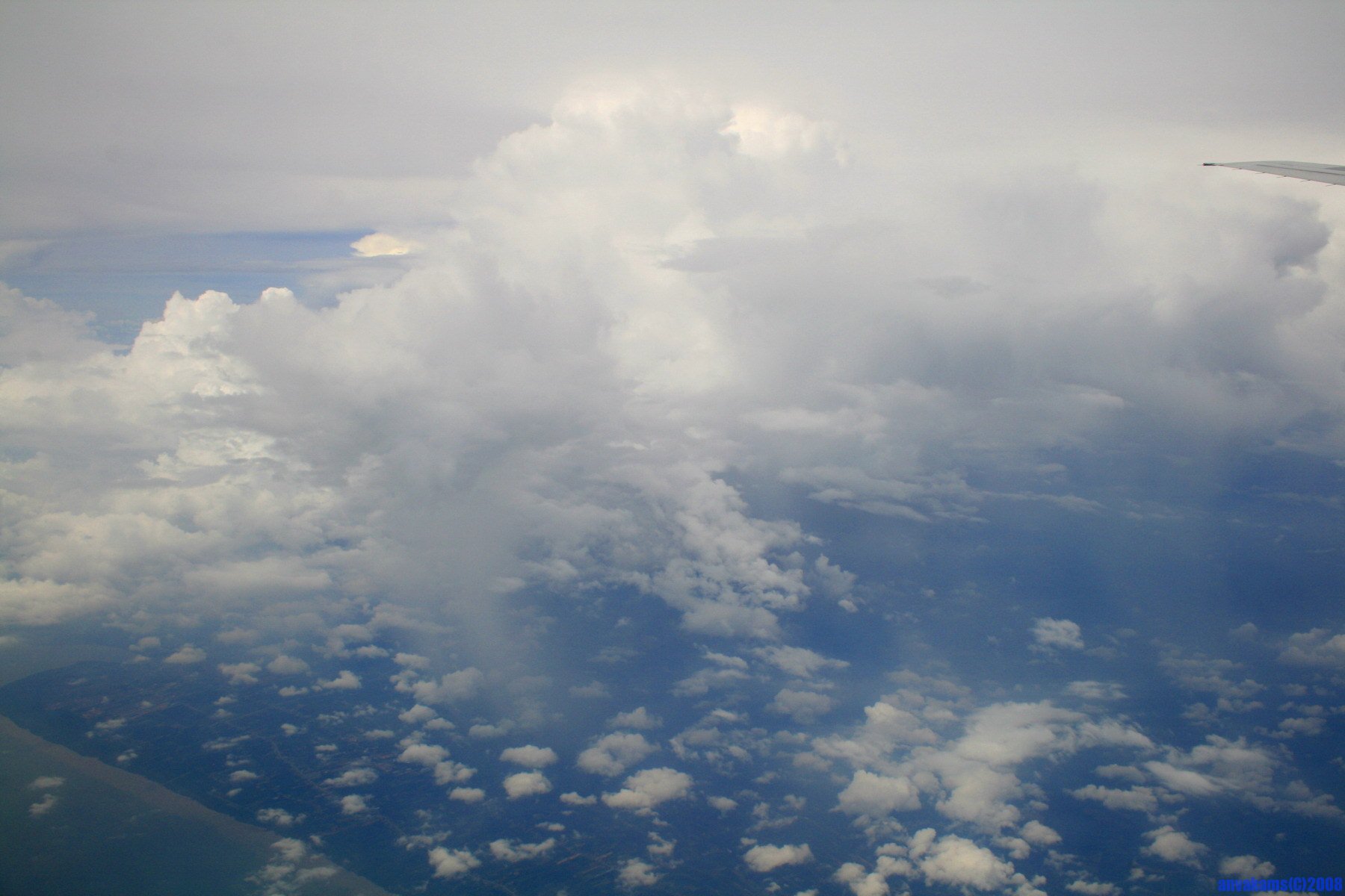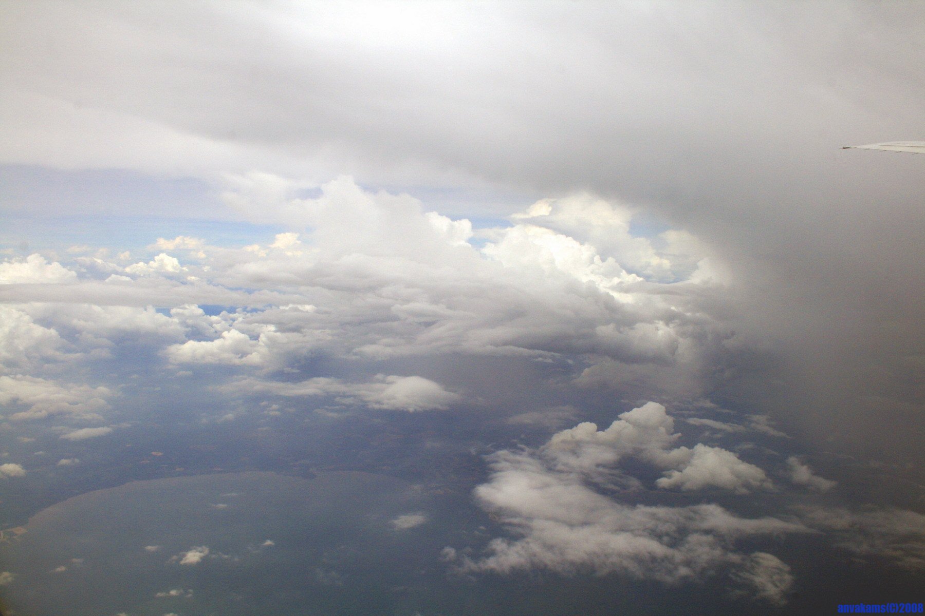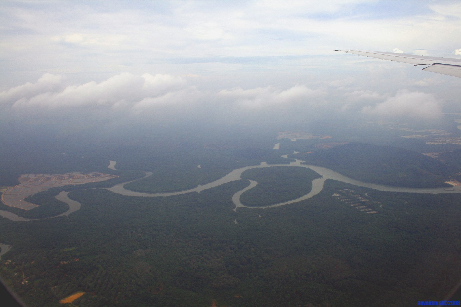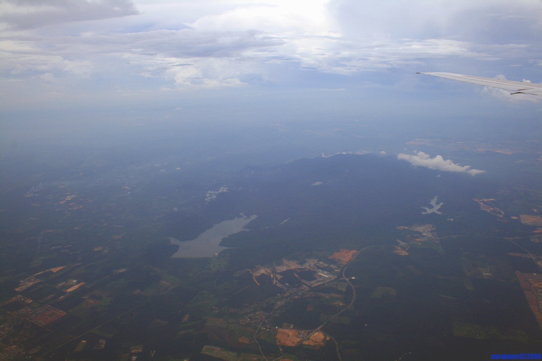 Ну а дальше пошли снова облака, даже тучи, пролетели мимо нескольких грозовых фронтов непадалеку. Думаю, что комментарии излишни, уже все, что можно было сказать, — сказано. Кусочки лесов, плантации пальм, кусты кондоминиумов, поселки из кишко-видных домов… Это все Малайзия. Ну а также встречаются еще и горы. :-))